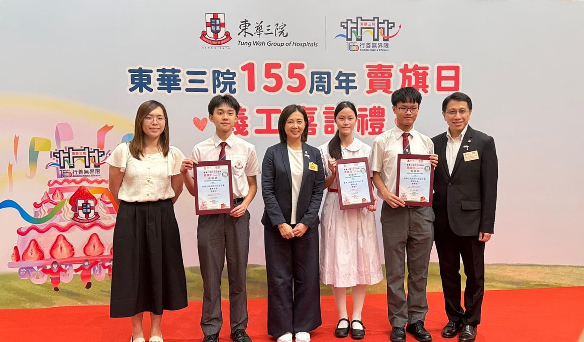 A student award ceremony was organized by the TWGHs Fundraising Division to recognize the efforts of students. Two selected students and one TWGHs ambassador from our school were invited to participate in the ceremony.Thank you for all our students' concerted efforts on Flag Day 2025.