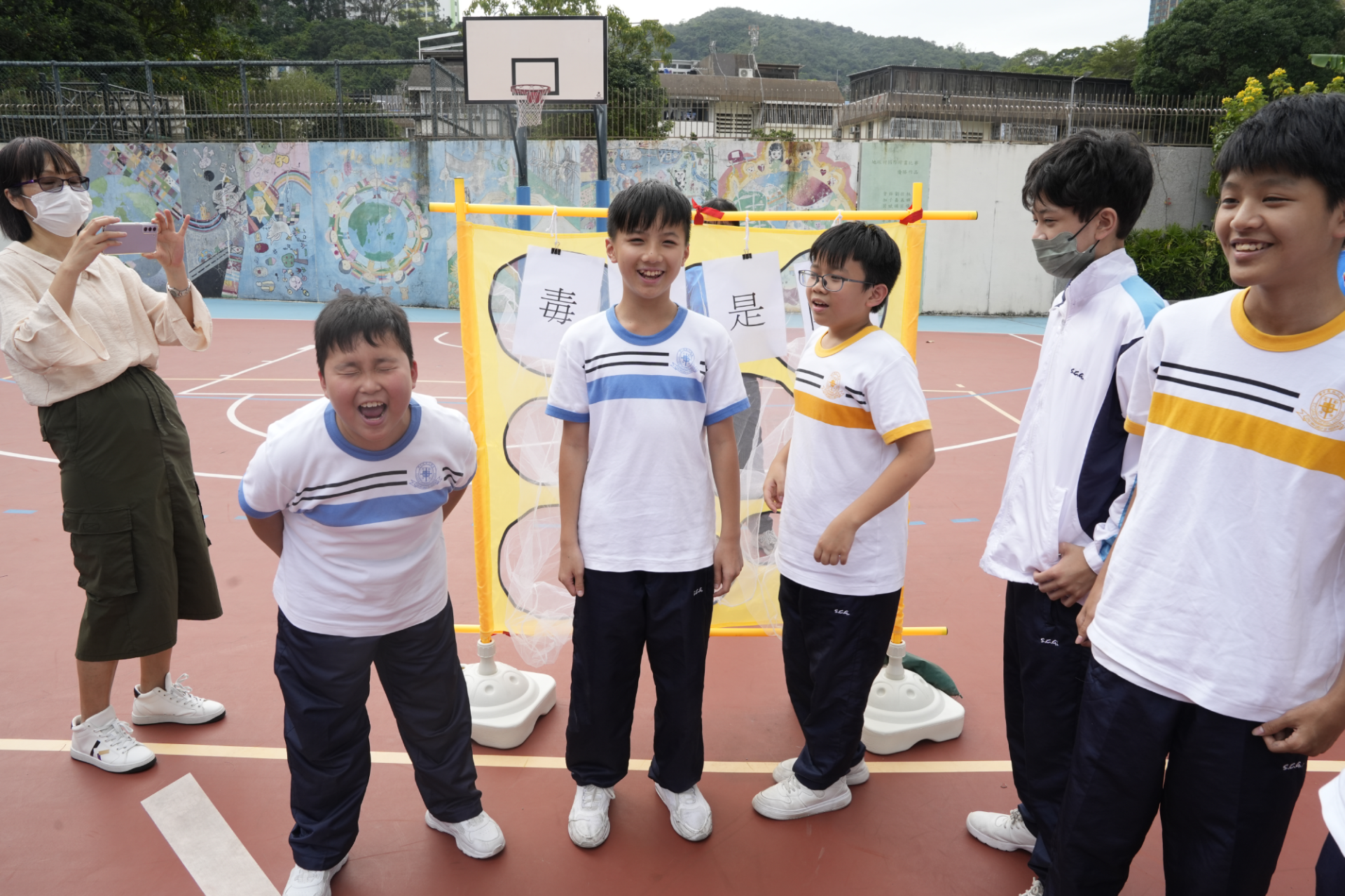 The event featured three rounds of competitions with different games: “Stay Away from Drugs (遠離毒品)”,“Escape the Harm of Drugs (逃避毒品的傷害)”, and “Kick Drugs Out (踢掉毒品).” After an hour of intense competition, Class 1D won the champion, Class 1A was the 1st runner-up, Class 1B was the 2nd runner-up, and Class 1C was the 3rd runner-up.
