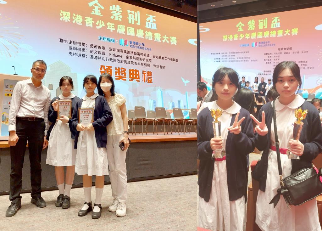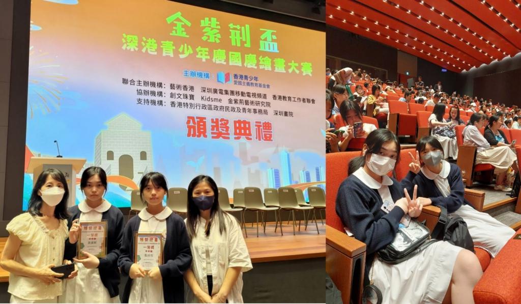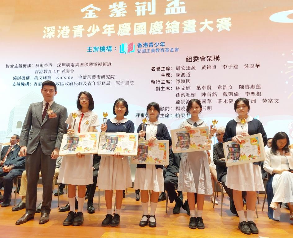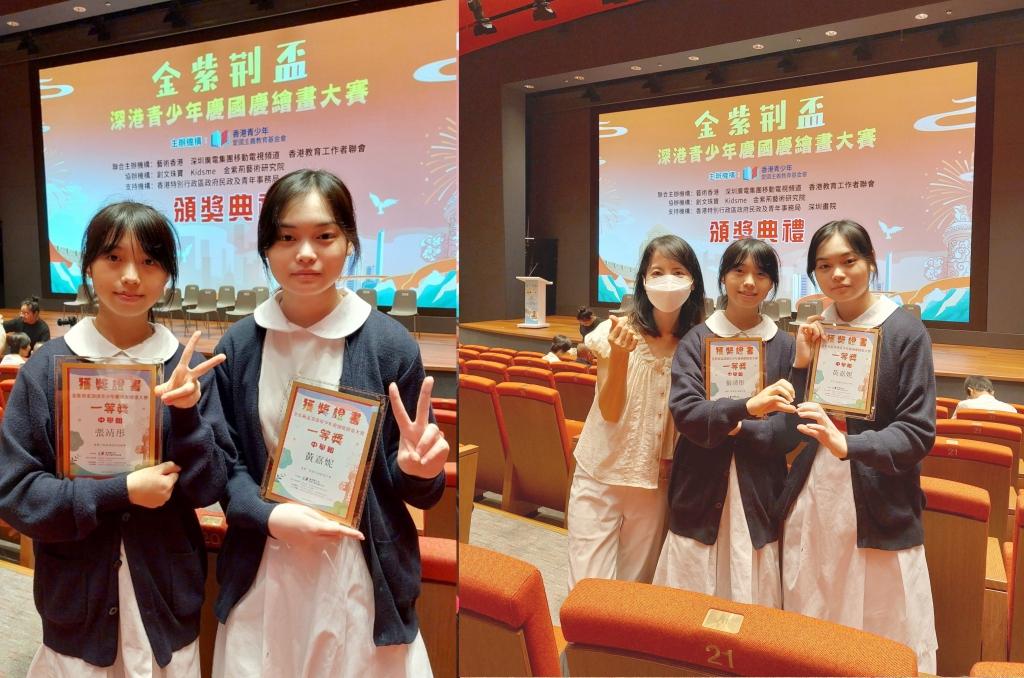 金紫荊盃(深港)青少年慶國慶繪畫大賽,大會收到多達二千件作品。恭賀本校中四級學生黃嘉妮和張倩彤均獲一等獎。