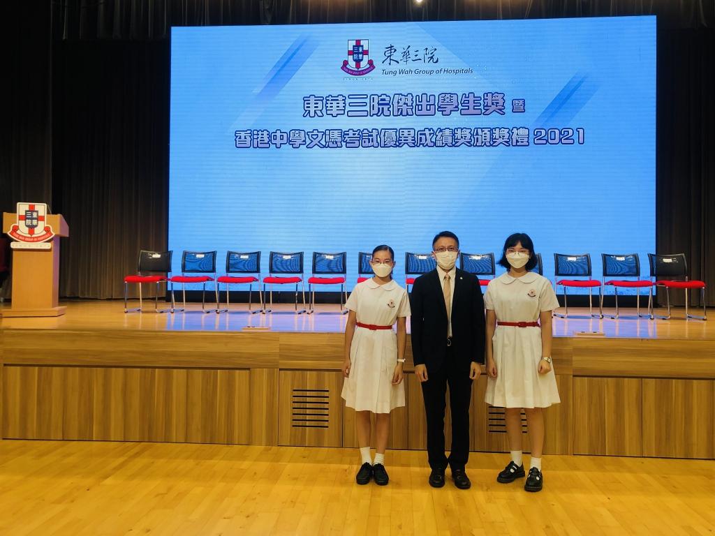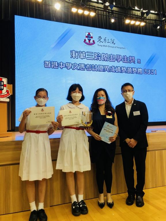 東華三院中學傑出學生獎(優異奬)Outstanding Student with Merit: 5A Lau Ching Man 劉靜文傑出課外活動獎Outstanding Student (ECA): 4A Lau Chin Wun 劉芊渙