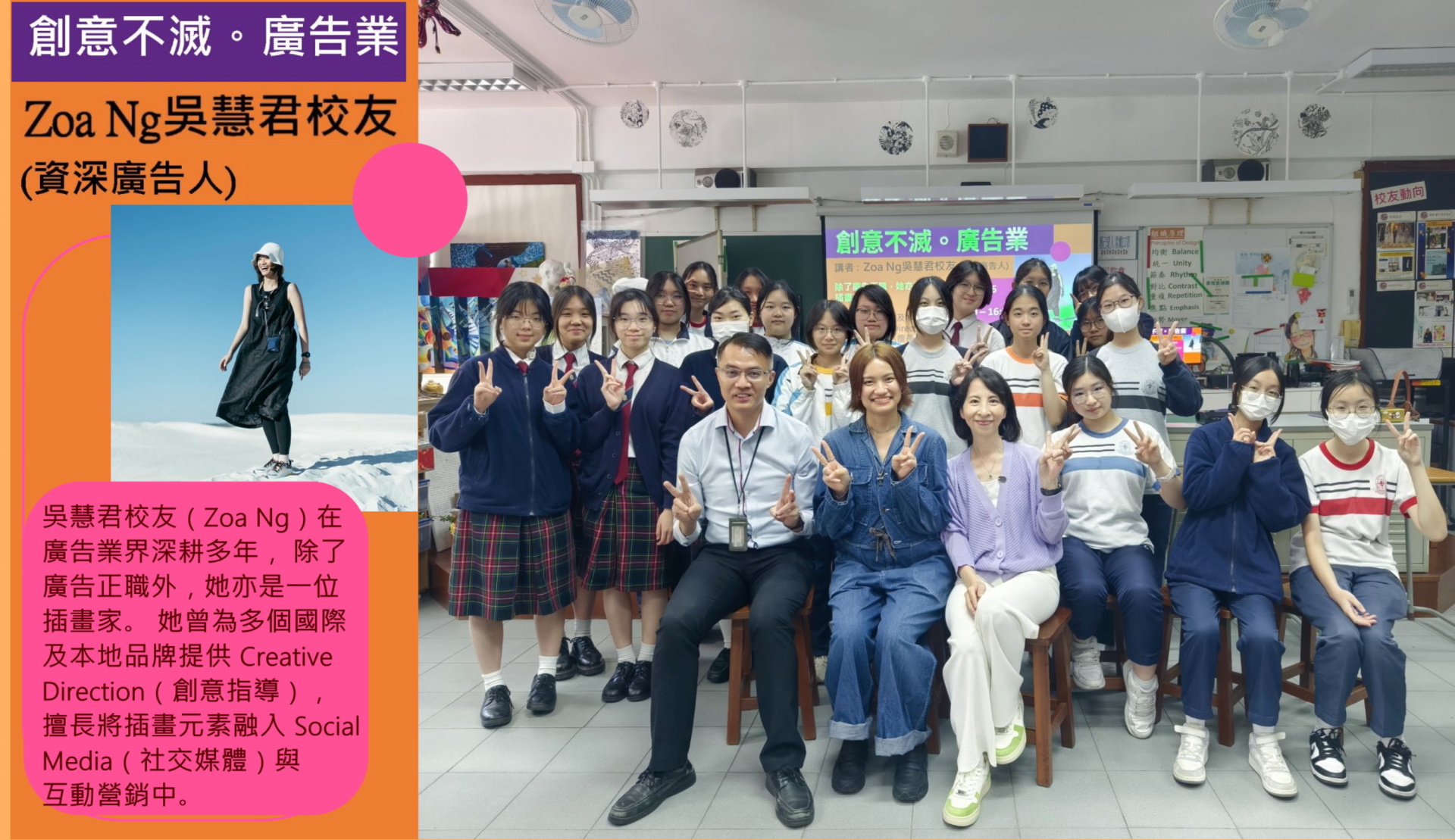 Alumna Ms Zoa Ng has deep roots in the advertising industry, having accumulated extensive practical experience over the years. Beyond her professional career in advertising, she is also a talented illustrator. Zoa has provided creative direction for numerous international and local brands, specializing in integrating illustrative elements into social media and interactive marketing. We would like to express our heartfelt gratitude to Zoa for her wonderful sharing.